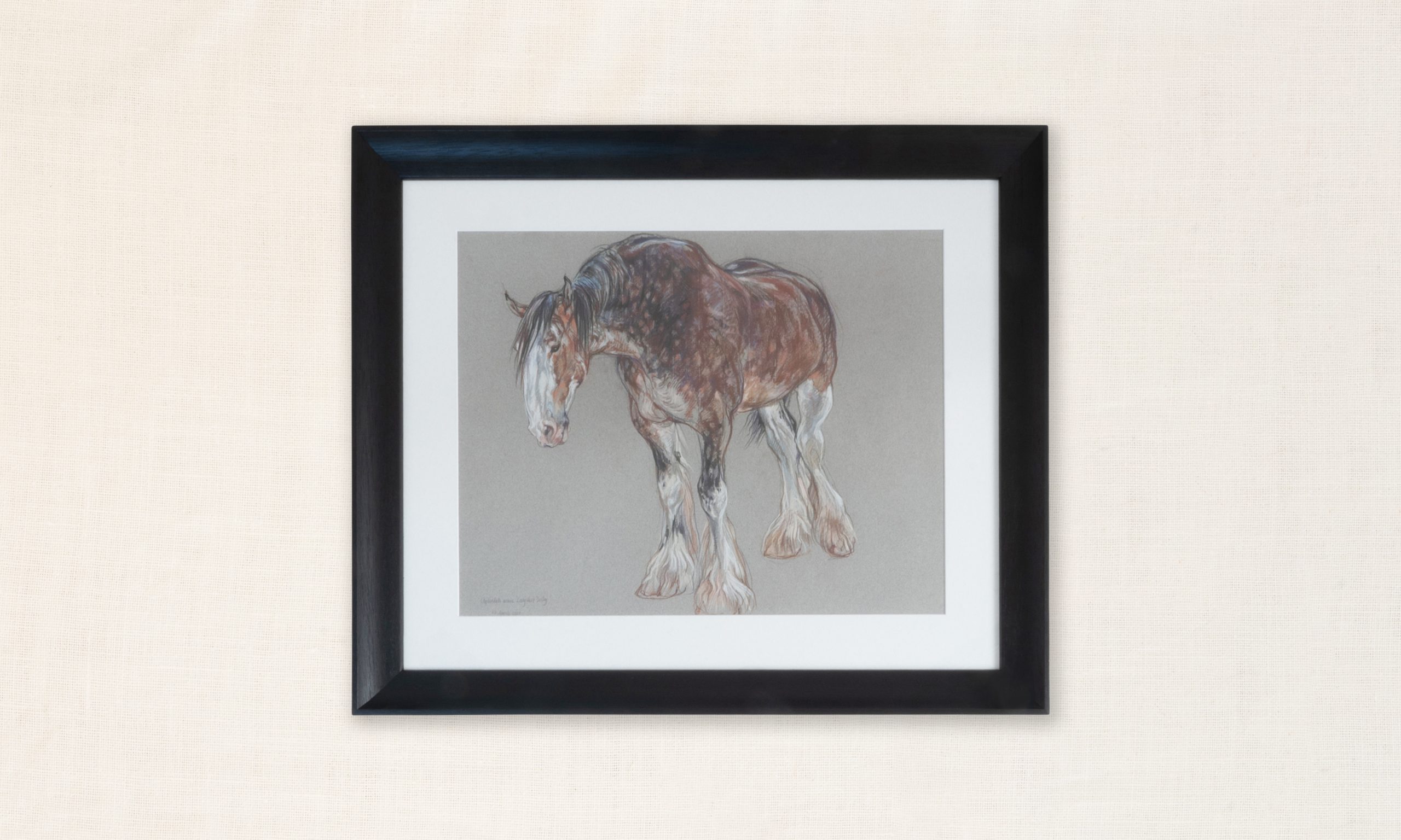 Clydesdale More Dappled – This stunning piece is part of a larger collection of framed 20th-century show horse drawings by Royal Academy artist Leslie Charlotte Benenson. Elegantly presented in a hand-painted black wooden frame and protected behind glass, it’s a timeless addition to any space. Leslie Benenson was a renowned English artist celebrated for her versatility across various mediums, including sculpture, oils, watercolors, ceramics, and calligraphy. Her work captures both beauty and craftsmanship, making this piece a true treasure.