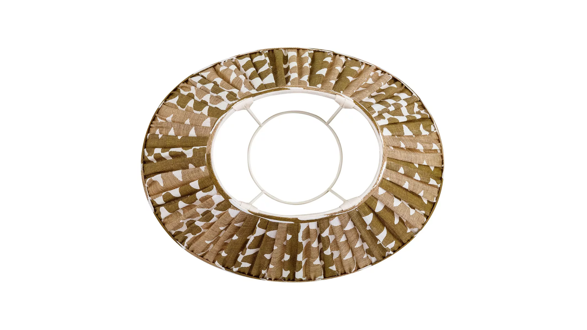 Fermoie Oval Gathered Bedwyn Lampshade in Neutral Whittle. All Fermoie lampshades are designed and hand-made in their Studio & Factory in Wiltshire, using light linen and light cotton fabrics which are printed in-house.