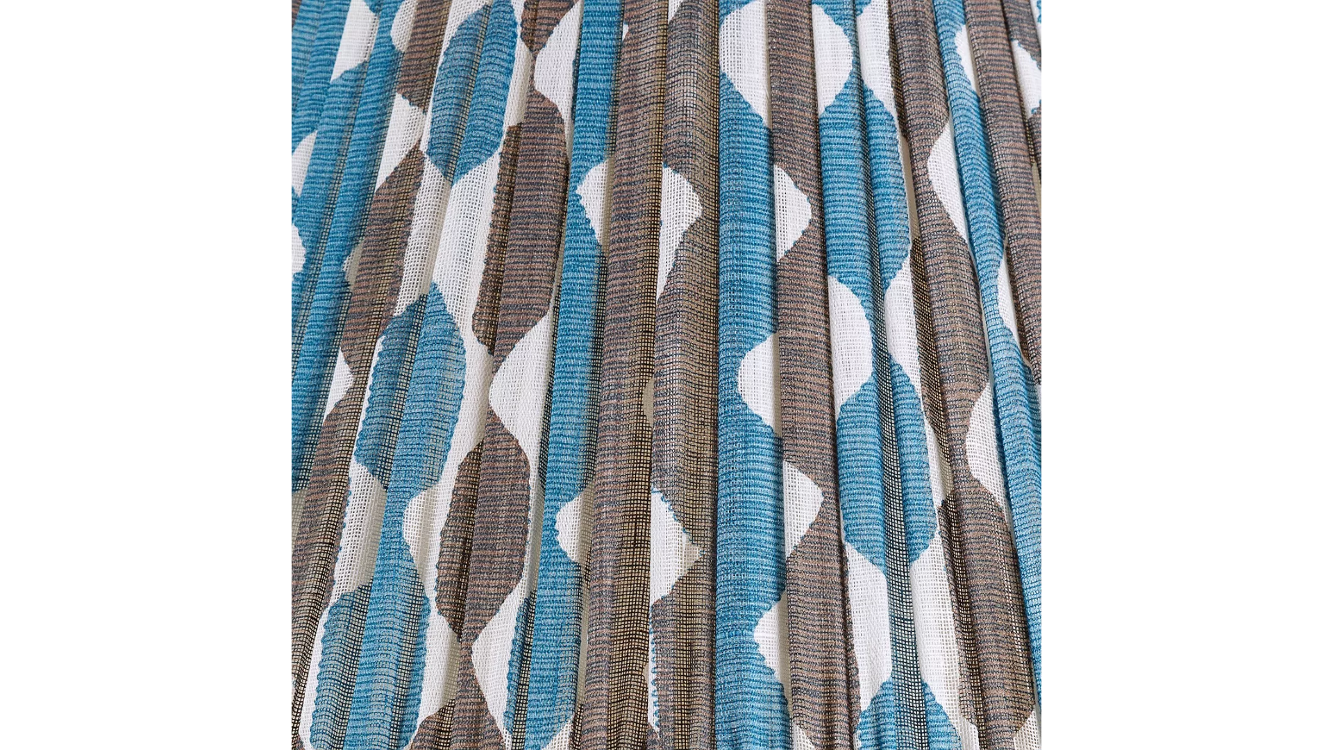 Fermoie Round Gathered Bedwyn Lampshade in Blue & Neutral Whittle. All Fermoie lampshades are designed and hand-made in their Studio & Factory in Wiltshire, using light linen and light cotton fabrics which are printed in-house.