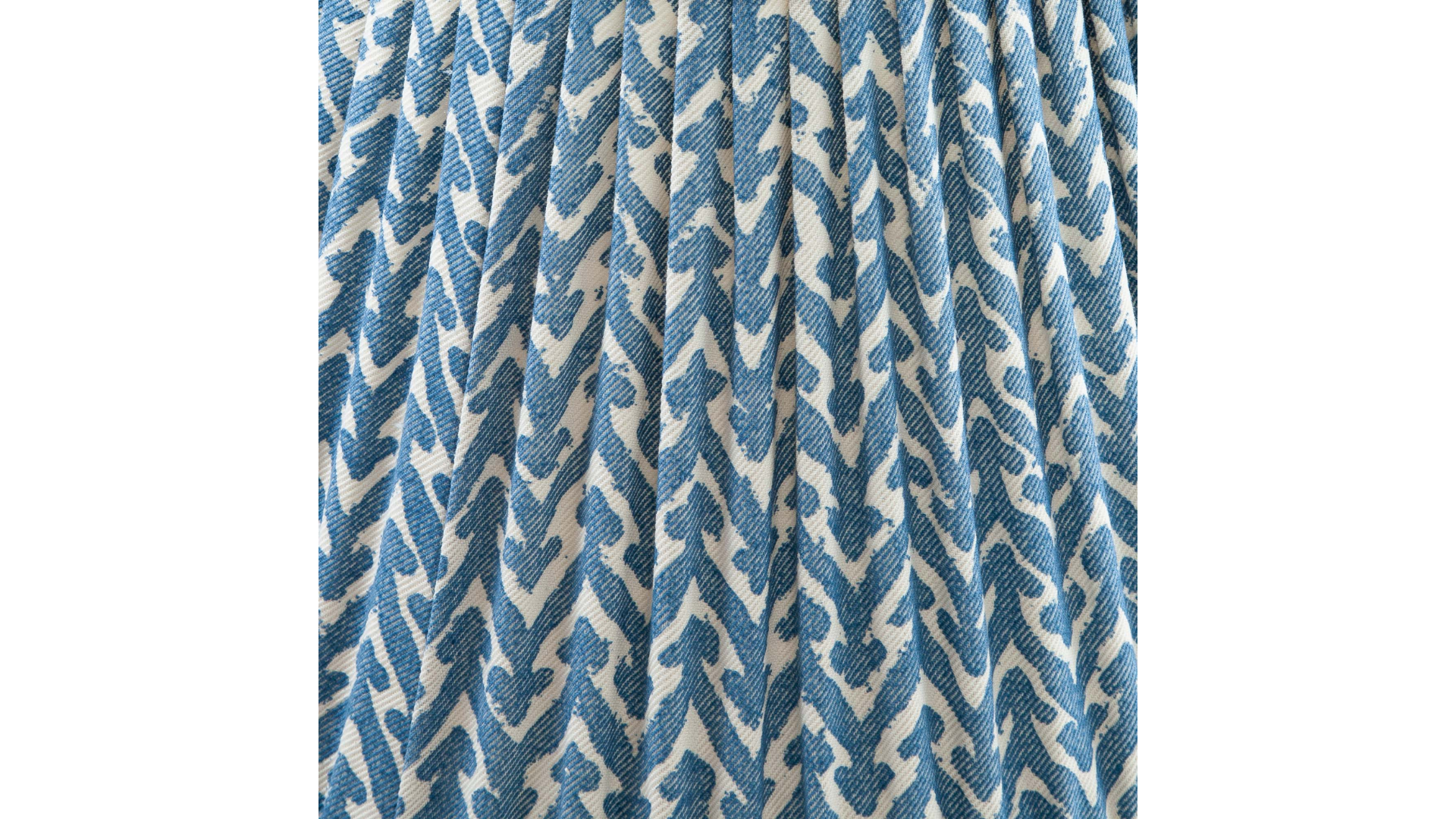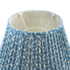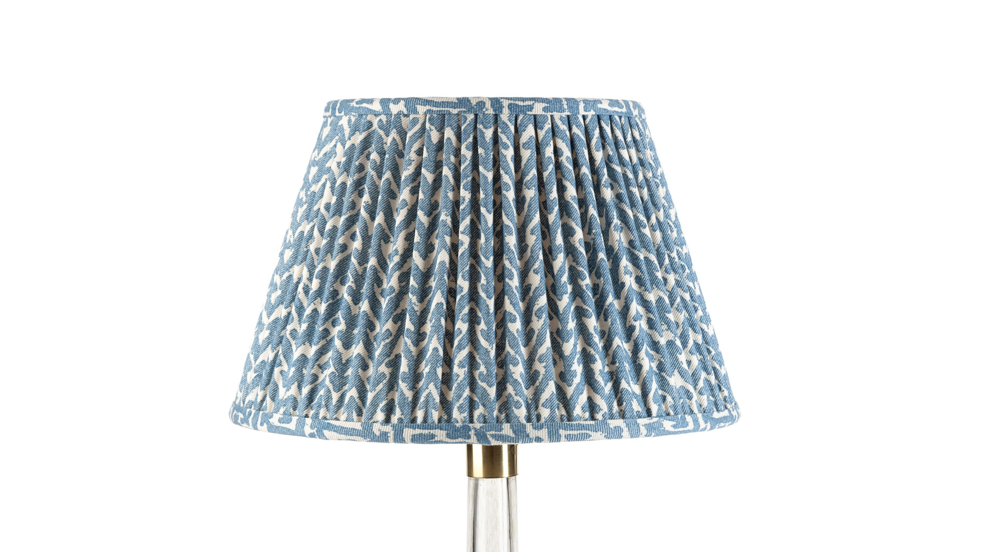 Fermoie Round Gathered Bedwyn Lampshade in Blue Rabanna. All Fermoie lampshades are designed and hand-made in their Studio & Factory in Wiltshire, using light linen and light cotton fabrics which are printed in-house.