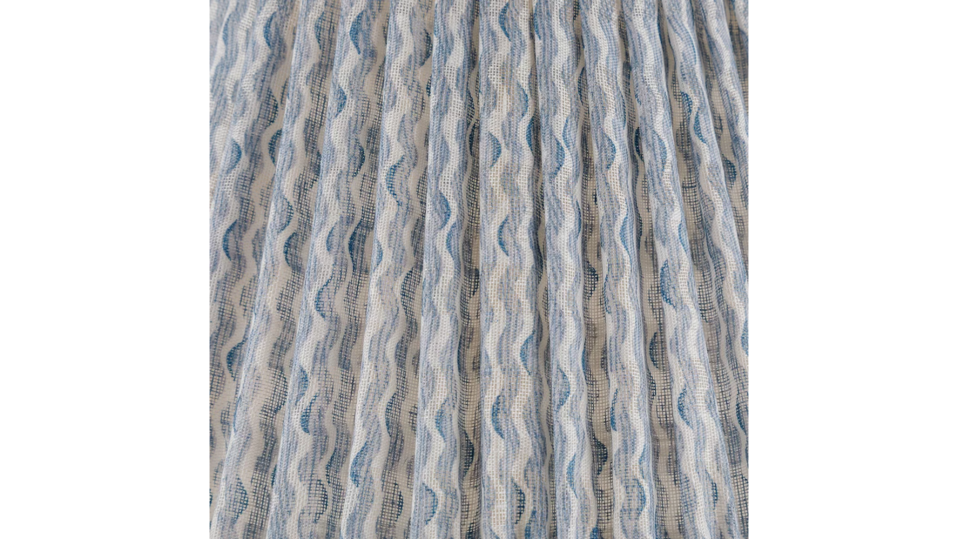 Fermoie Round Gathered Bedwyn Lampshade in Light Blue Popple. All Fermoie lampshades are designed and hand-made in their Studio & Factory in Wiltshire, using light linen and light cotton fabrics which are printed in-house.