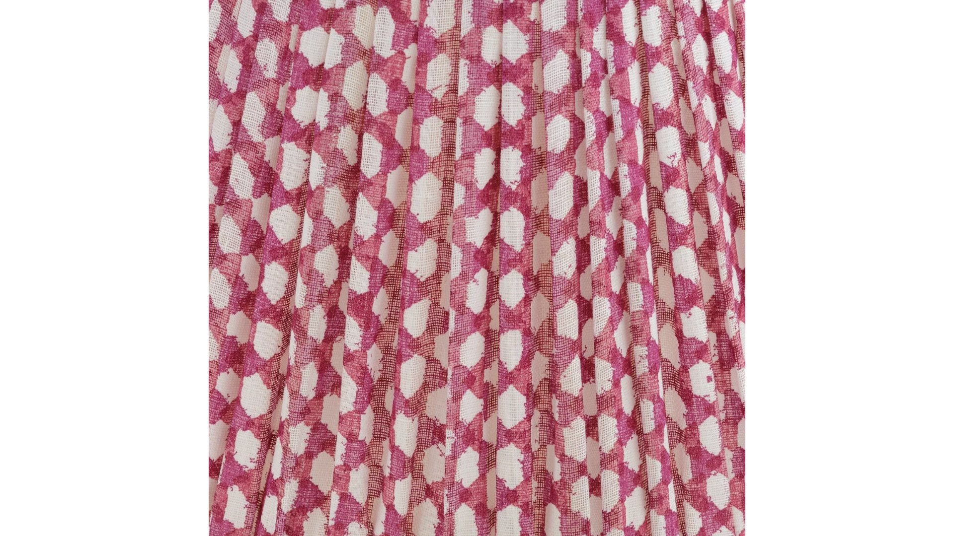 Fermoie Oval Gathered Bedwyn Lampshade in Fuchsia Wicker. All Fermoie lampshades are designed and hand-made in their Studio & Factory in Wiltshire, using light linen and light cotton fabrics which are printed in-house.